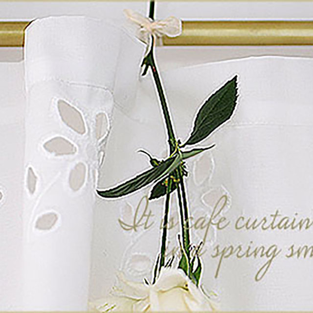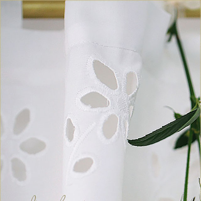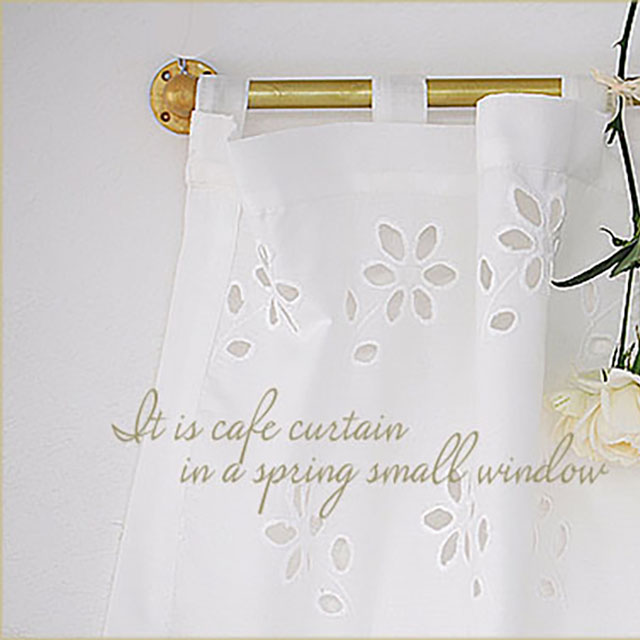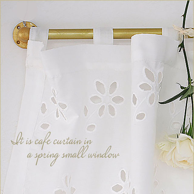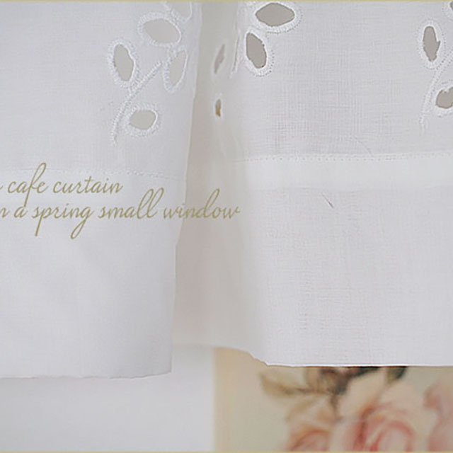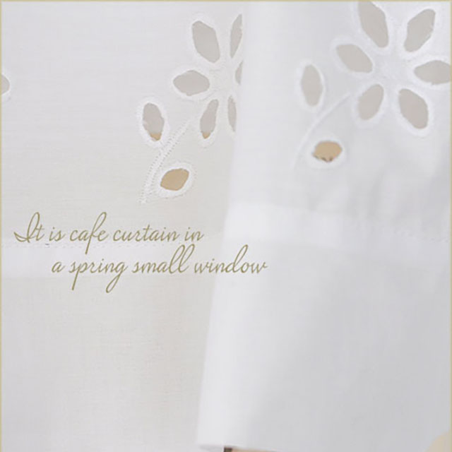 綿ブロードの生地にマーガレット柄のカットワークの可愛いレース生地です 生地幅115cmに柄の幅は90cmで小窓のカフェカーテンには生地幅を3等分で 30cmの丈のものが出来ます すそに80番ローンを使うと丈の調節が出来また裾の始末も楽です。 また子供の夏のスカートにたっぷりのギャザーで可愛いものになります テーブルクロスも夏にカットワークで爽やかな1枚に----☆