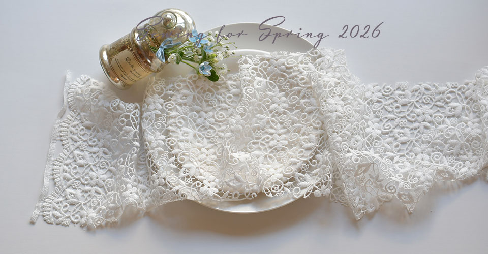幅18cm×長さ95cmのカットクロス、そのまま首元の巻いても素敵なレース。 またドール服に使ってもぼったりとした厚みが良い雰囲気に☆