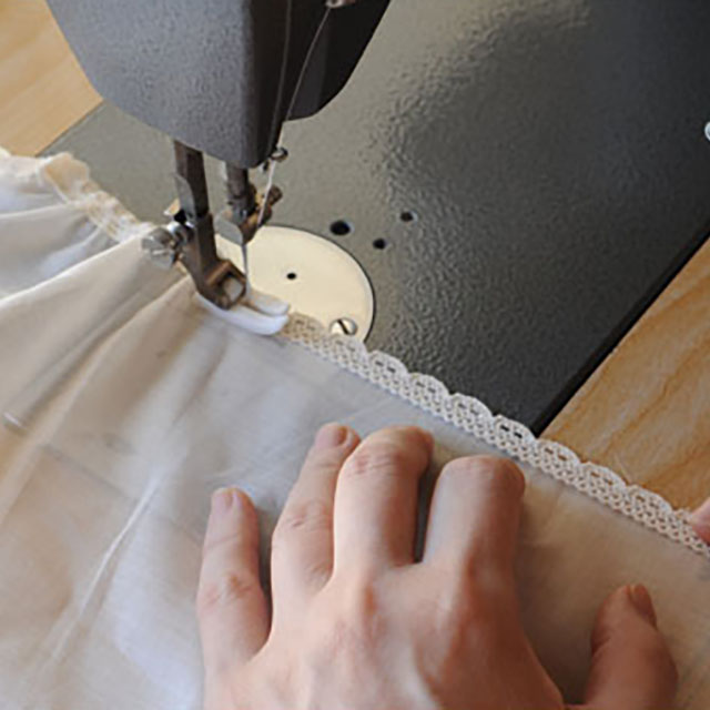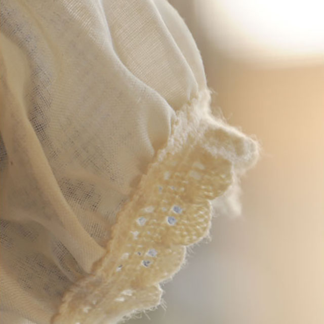 ひっぱりながら縫い付けて可愛い袖口が簡単にできます☆ 赤ちゃんのブラウスの袖口や手作りの靴下にちょっことレースをつけると可愛いさアップ!